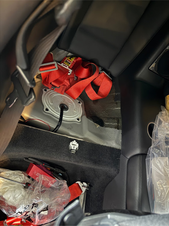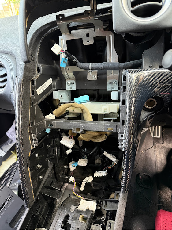 シートを外さないと脱着できないので、助手席を外して、内天井を抜きます