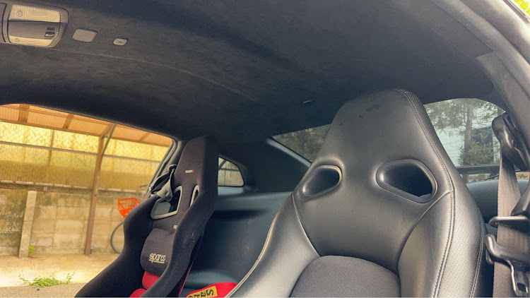 内装天井が白色なので、NISMOのアルカンターラの引き締まった内張に交換と、